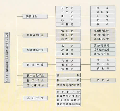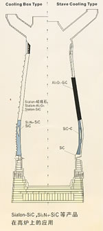 非氧化物复合耐火材料是我公司在国家“八·五”和“九·五” 重点科技攻关项目的支持下,通过近十一年的科技开发与实际应用。不断创新、完善而发展起来的一系列高级耐火材料。其中,塞隆刚玉锆质滑动水口通过国家级鉴定,并获多项国家和省部级科技成果奖,产品出口到东欧、北美和俄罗斯等国家和地区。塞隆刚玉质耐磨材料在电厂和选矿厂代替硬质合金,以超过硬质合金6倍的寿命,取得用户的肯定。塞隆结合碳化硅砖、塞隆结合刚玉砖和氮化硅结合碳化硅砖广泛用于高炉炉衬、透气塞、有色金属冶炼炉及铝厂铝电解槽,均取得较理想的效果。塞隆碳化硅系列陶瓷窑具以其优异的强度和抗热震性在高温陶瓷窑上用作高温承载的窑具,其使用寿命达到国外进口产品水平。